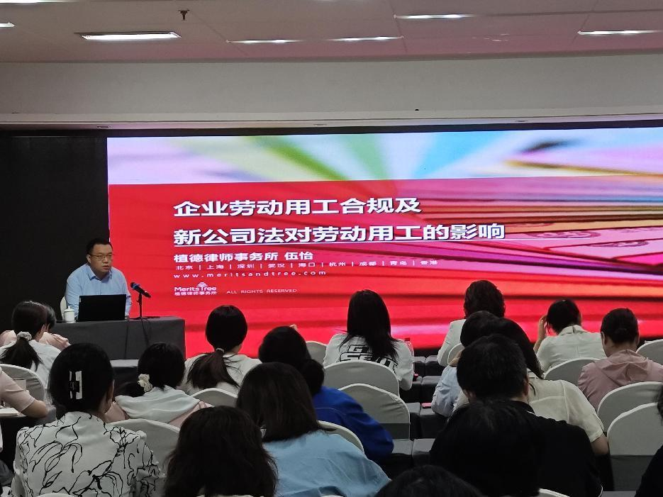 活动特别邀请了北京植德律师事务所合伙人伍怡律师作为主讲嘉宾。伍律师聚焦企业劳动用工合规及新公司法对劳动用工的影响,以其多年争议解决、劳动人事领域的执业经验,通过生动的案例分析和深入浅出的讲解,从用工模式类型、劳动合同注意要点、常见劳动争议应对方案、新公司法对劳动用工的影响等四个方面,解答了现场企业朋友们在员工合规管理、劳动风险防范、各类劳动纠纷应对上等各方面的疑问。讲授内容全面、实操性强,现场企业积极提问、反应热烈。参会企业代表表示,此次培训受益匪浅,将把所学法律知识应用到实际工作中,提升企业法律风险防范能力。