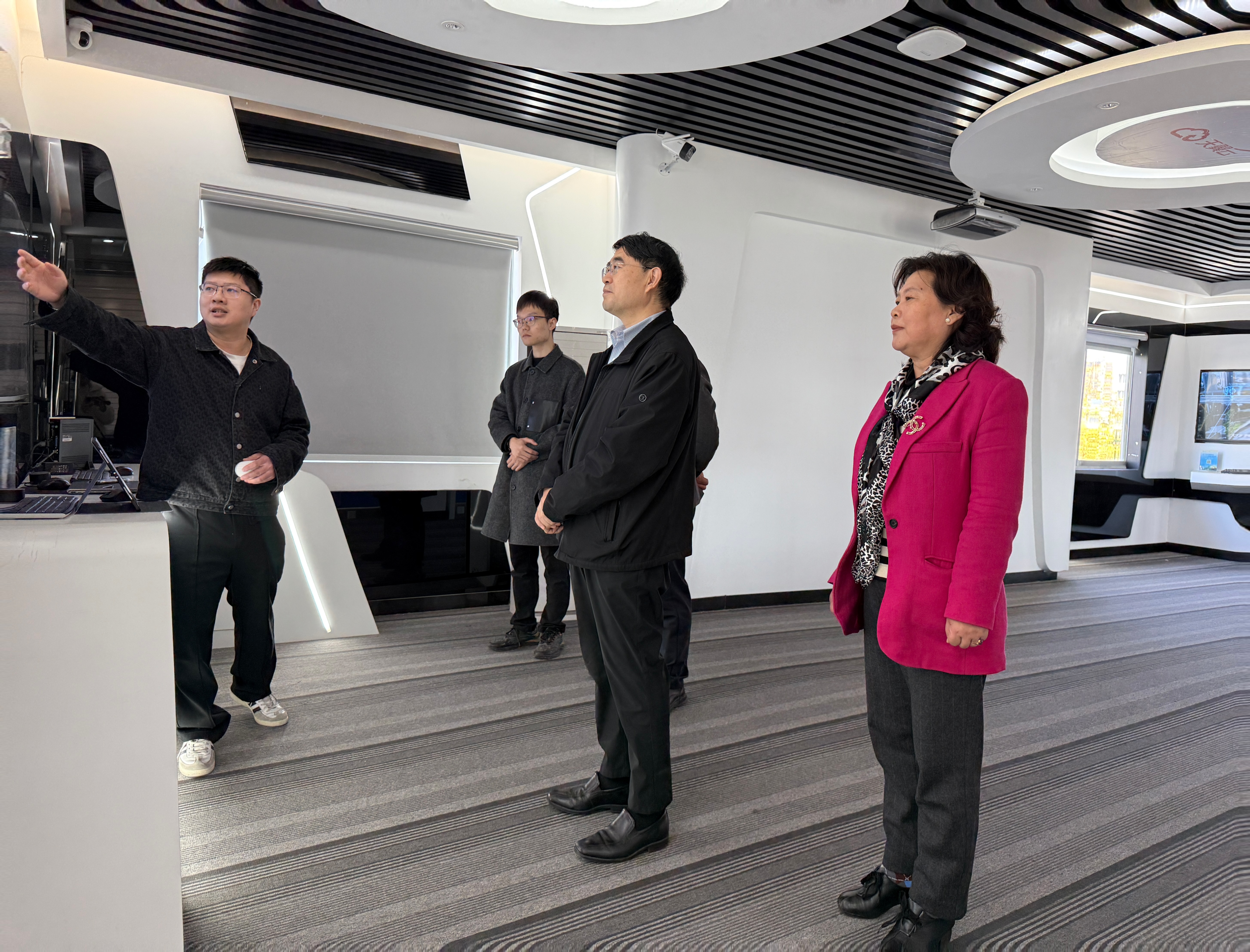 冯旭一行参观了省中小企业公共服务平台市场主体诉求响应中心和企业数字化转型服务体验中心,观看了省中小企业公共服务平台宣传片,听取了中心主任李承绘关于我省中小企业公共服务体系建设、中小企业服务工作情况的汇报以及中心副主任史岩关于“楚企通”平台建设和对接全国中小企业服务“一张网”实施计划的情况汇报。