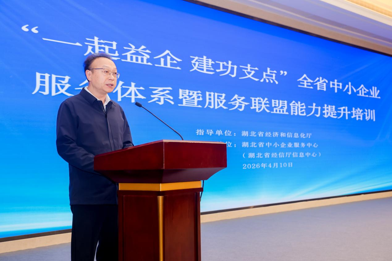 4月10日,2026年“一起益企 建功支点”全省中小企业服务体系暨联盟能力提升培训在武汉成功举办,省经信厅党组成员、副厅长刘卫军出席活动并致辞。