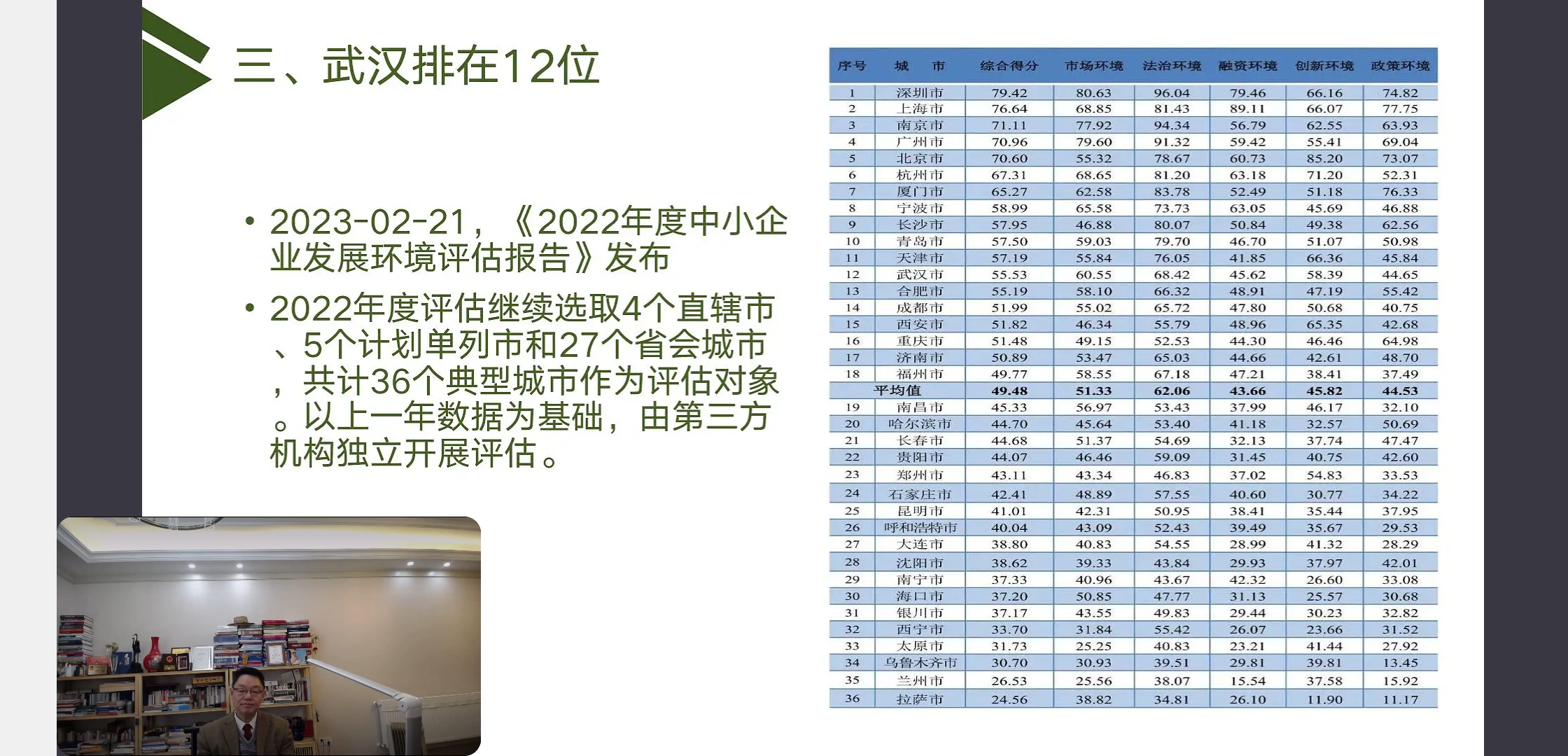 近日,湖北省政府出台优化营商环境“47条”,工信部中小企业发展促进中心发布《2022年度中小企业发展环境评估报告》,营造良好营商环境,促进中小企业高质量发展,受到社会各界的广泛关注和高度重视。在此背景下,本次直播活动特别邀请原湖北省统计局副局长、博士生导师叶青教授以《优化营商环境,促进高质量发展》为主题,从营商环境的提出、湖北已采取的措施、武汉市的营商环境解析、各地的成功经验以及下一步工作建议等五个方面,对优化营商环境的政策、案例、建议都作了详细解读。