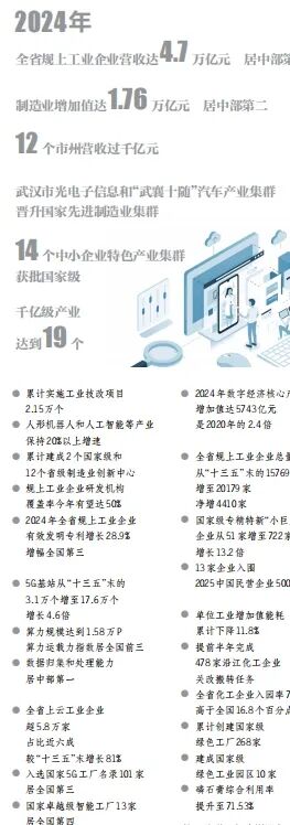 一组组跃动的数字背后,智能车间里机械臂精准运转的轻鸣隐约可闻,纤若毫发的光纤中正奔涌着看不见的信息洪流,湖北产业倍增的蓬勃活力扑面而来。